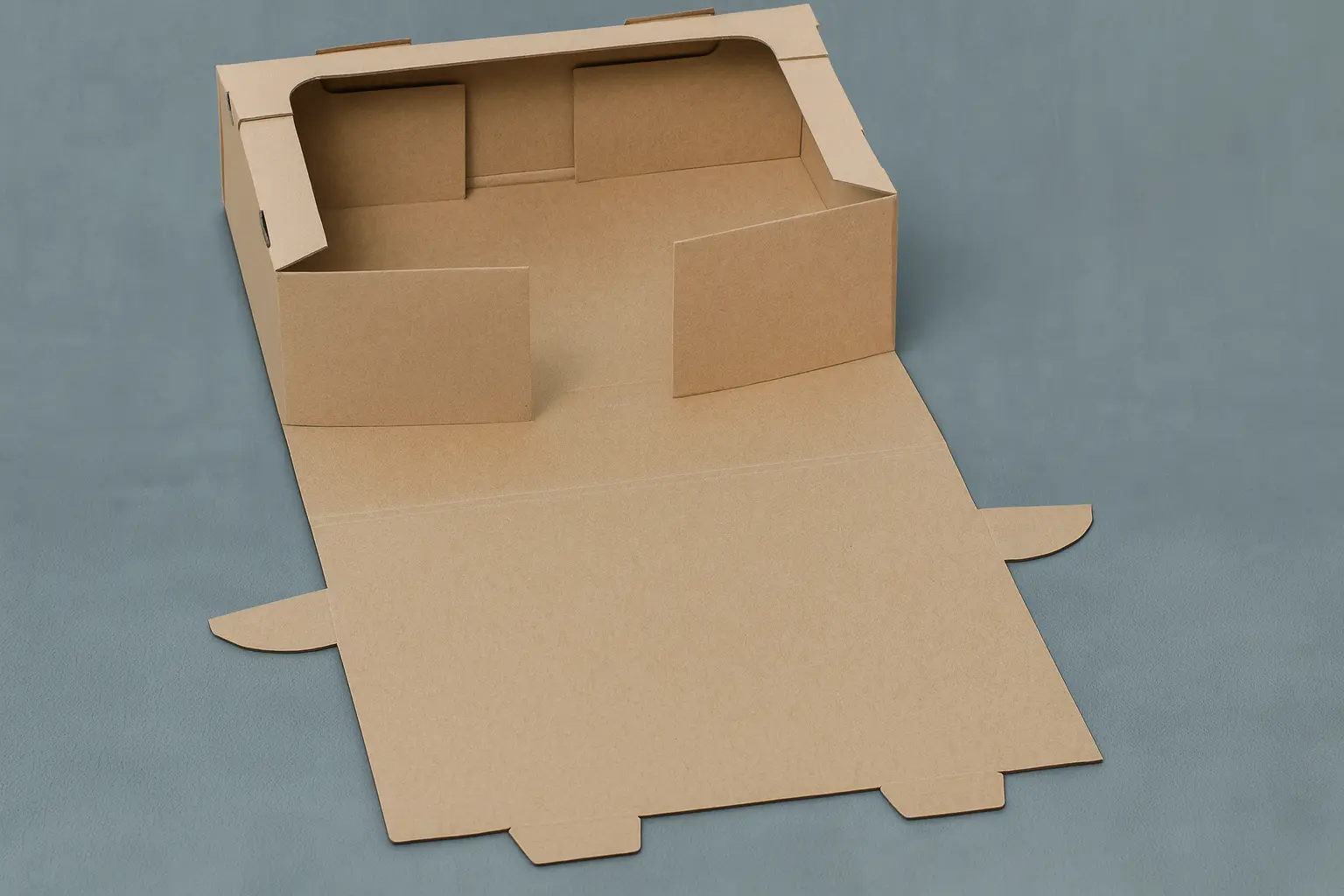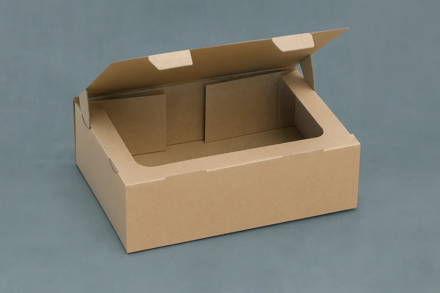 Eleganckie, naturalne pudełko cukiernicze typu C16 wykonane z solidnej tektury kraft. Składana konstrukcja z wygodną klapką gwarantuje szybkie pakowanie i pewne domknięcie, a wycięcie ekspozycyjne z przodu pięknie prezentuje zawartość.