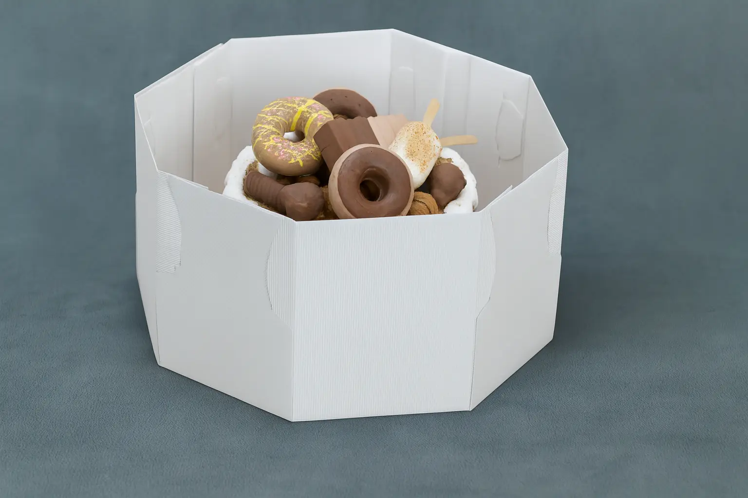 <p></p><p><strong>Opakowanie na tort ośmiokątne</strong> to eleganckie i solidne pudełko wykonane z wytrzymałej tektury, pokrytej ozdobnym brokatowym wykończeniem. Doskonale sprawdzi się do pakowania i bezpiecznego transportu tortów oraz ciast okolicznościowych.</p>