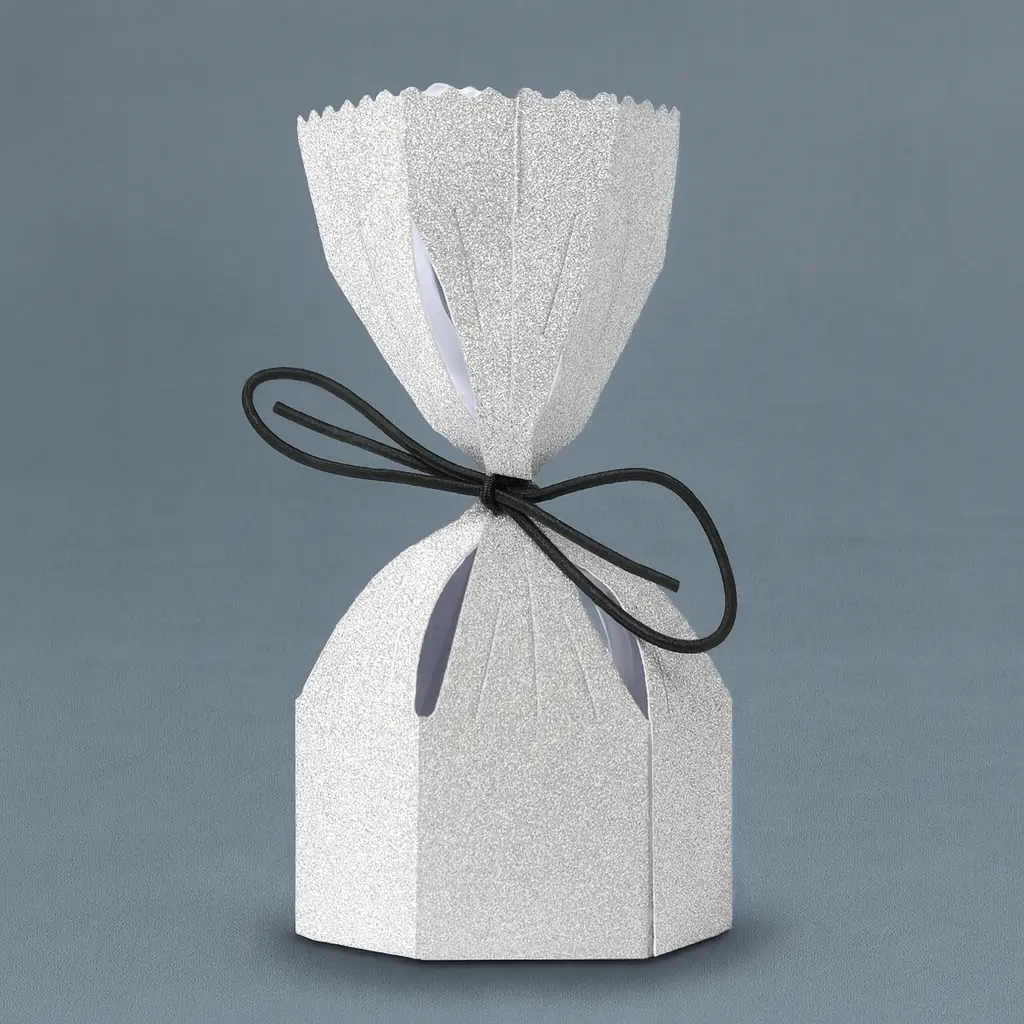 Opakowanie cukiernicze w kształcie sakiewki to stylowe i praktyczne pudełko wykonane z wysokiej jakości kartonu. Jego unikalna forma sprawia, że doskonale nadaje się do pakowania słodyczy, pralinek, ciastek czy drobnych upominków.