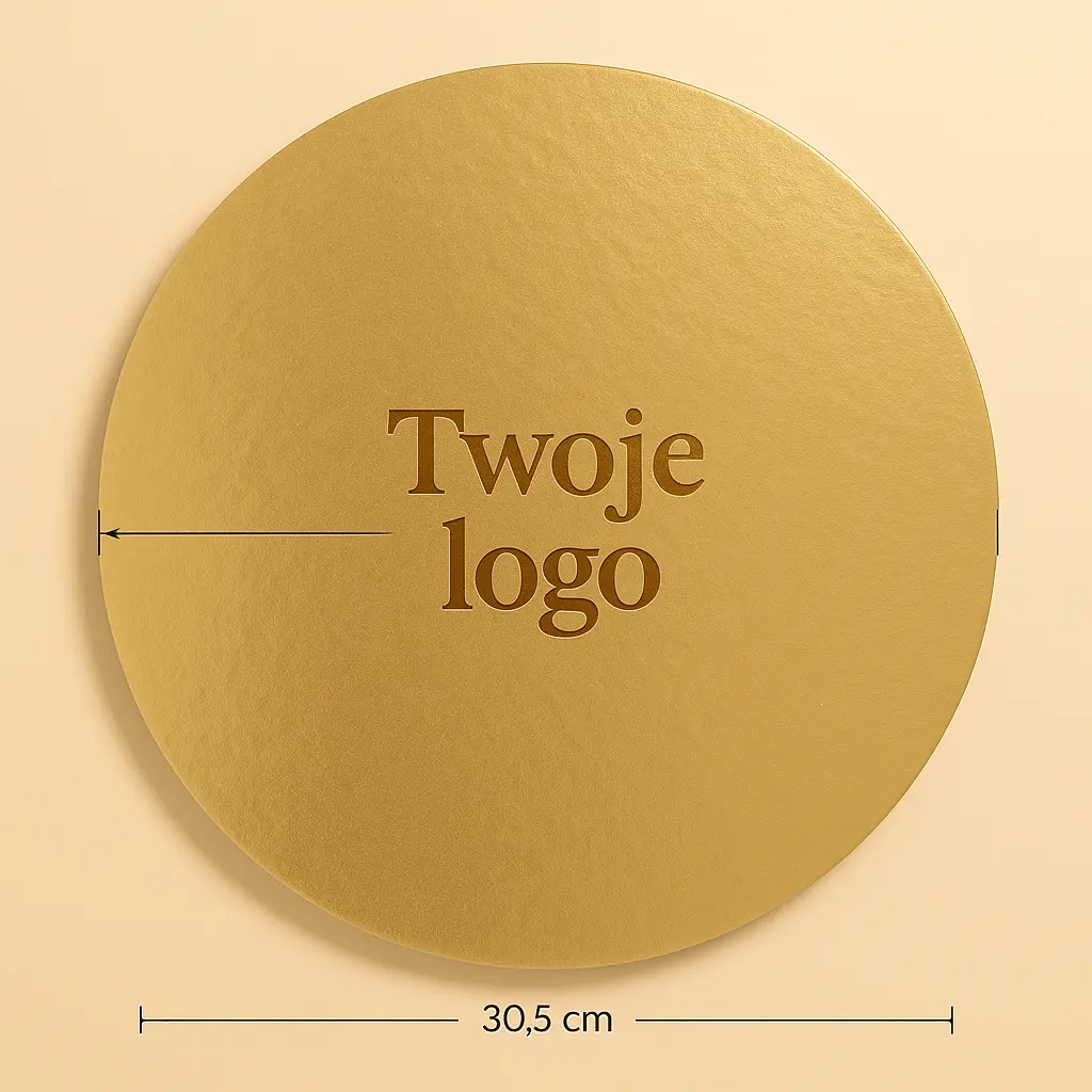 Duży, okrągły podkład do tortów i ciast. Elegancka, metalizowana powierzchnia w kolorze złotym podkreśla wygląd wypieku i ułatwia bezpieczne przenoszenie.