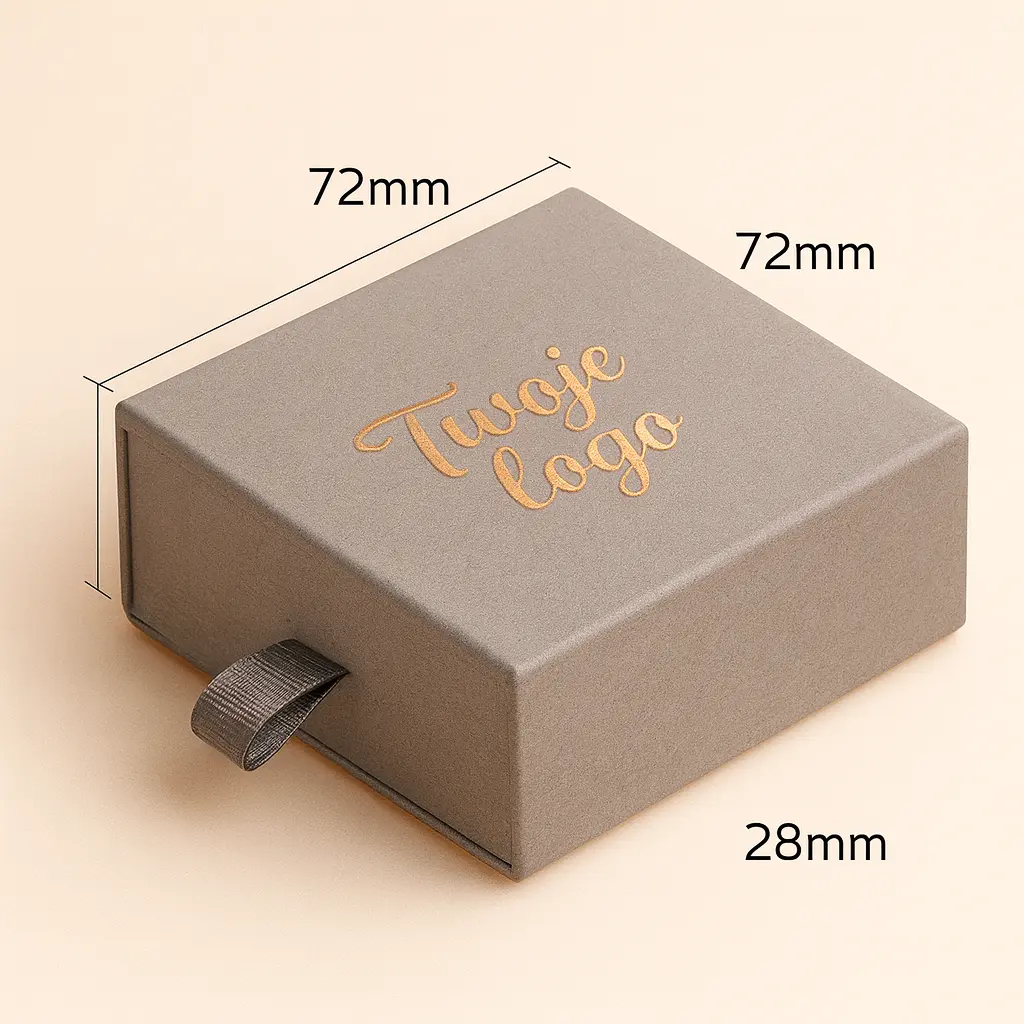 P190 to kompaktowe opakowanie szufladkowe o wymiarach 72 × 72 × 28 mm, zaprojektowane z myślą o eleganckiej prezentacji drobnych produktów. Jego minimalistyczna konstrukcja z wysuwaną szufladką i wstążką tworzy efekt ekskluzywnego unboxingu – idealnego dla marek, które dbają o wizerunek i doświadczenie klienta.