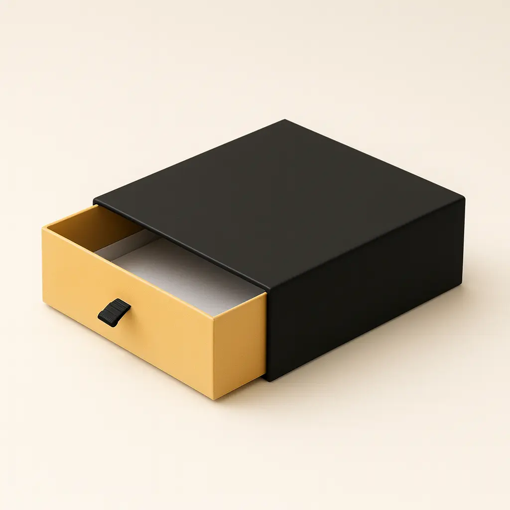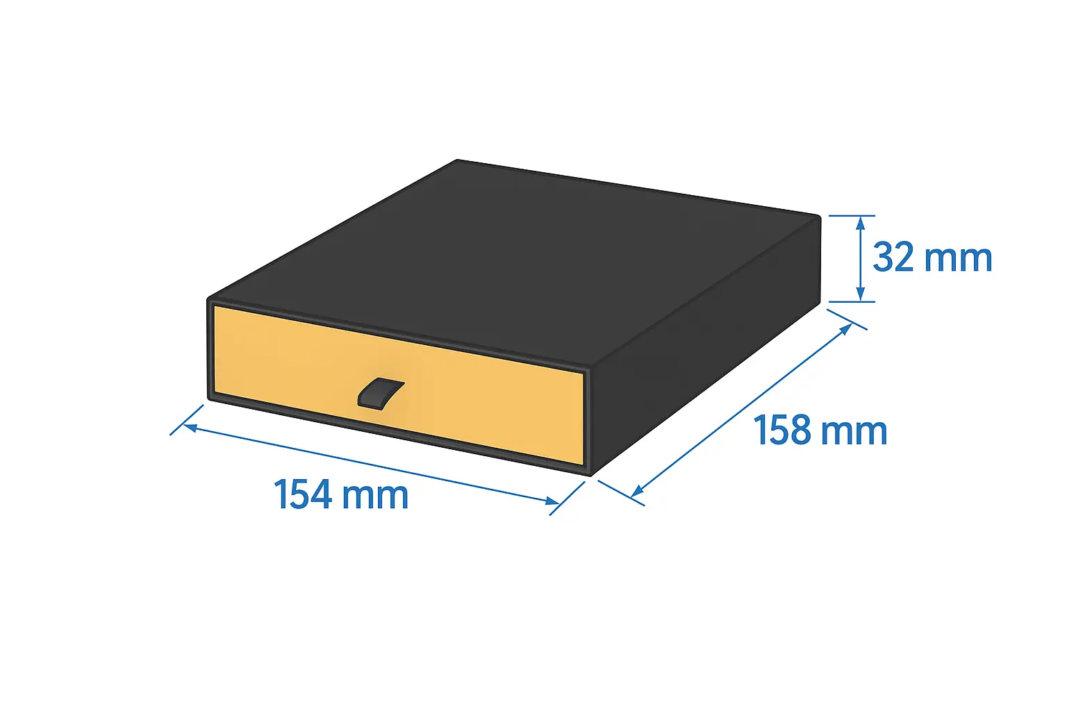 P193 to eleganckie i nowoczesne opakowanie szufladkowe o wymiarach 154 × 158 × 32 mm, zaprojektowane z myślą o produktach wymagających prestiżowej i estetycznej prezentacji. Kwadratowa forma z wysuwaną szufladką i dekoracyjną wstążką sprawia, że otwieranie opakowania staje się elementem wyjątkowego doświadczenia klienta.