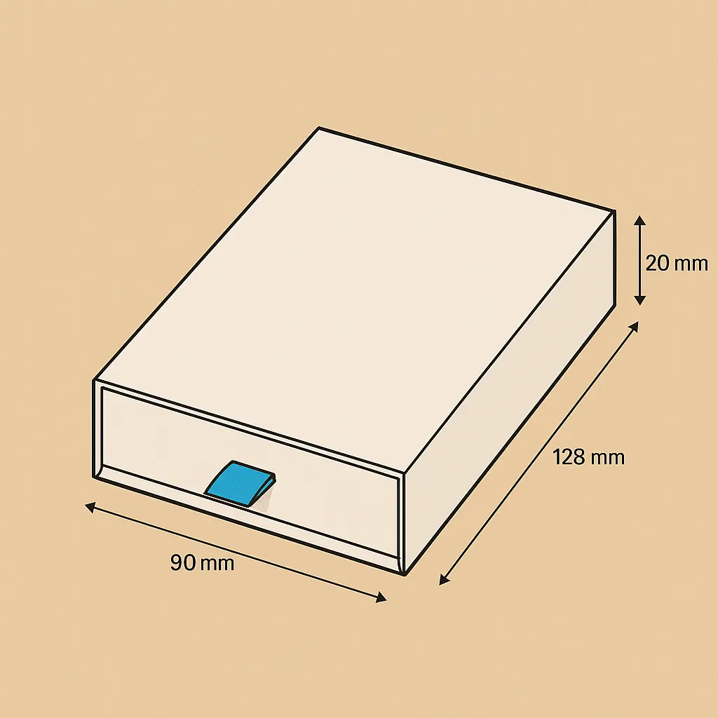 Eleganckie i funkcjonalne – P311 to opakowanie szufladkowe o wymiarach 128 × 90 × 20 mm, które doskonale łączy estetykę z praktycznym zastosowaniem. Wysuwana szufladka z ozdobną wstążką sprawia, że proces otwierania staje się wyjątkowym rytuałem, idealnym dla marek premium, produktów prezentowych czy edycji limitowanych.