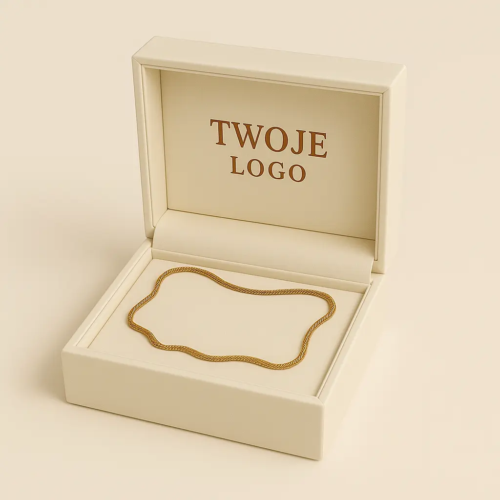 Pudełko może zostać spersonalizowane zgodnie z identyfikacją wizualną Twojej marki – zarówno na zewnętrznej, jak i wewnętrznej stronie wieczka. To doskonałe rozwiązanie dla jubilerów, projektantów biżuterii oraz marek poszukujących wyjątkowego opakowania w klasie premium.